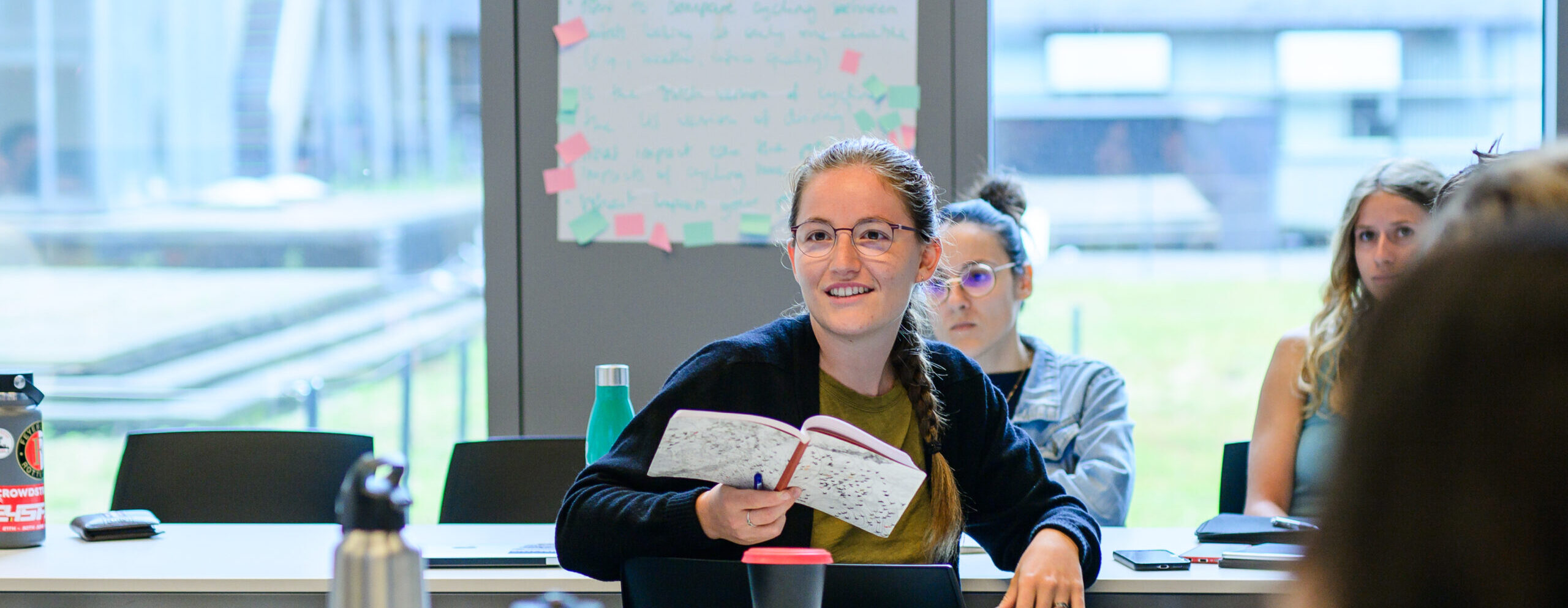 Julia Augart gaat met studenten in gesprek over AI in het vak Gender und Diversität.