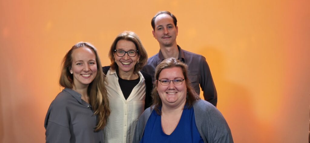 Myrrith, Kim en Vera ontwikkelen als Medical Educators e-learnings voor het geneeskundeonderwijs. Tim Sijstermans werkt bij team ICTO; hij houdt zich naast het ontwikkelen van e-learnings ook bezig met het beheer van diverse e-learnings die gebruikt worden binnen en buiten de geneeskundeopleiding van de UvA.