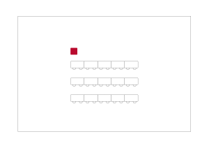 Deze meubelopstelling wordt standaard gebruikt aan de UvA. Studenten zitten in rijen en de aandacht is gevestigd op de docent. Deze opstelling is passend wanneer de docent lesgeeft en de studenten voornamelijk luisteren en aantekeningen maken. De opstelling zorgt voor duidelijk zicht en voldoende ruimte voor studenten. Gedurende de les is het mogelijk dat studenten elkaar helpen of in groepen opdrachten maken en bespreken.
