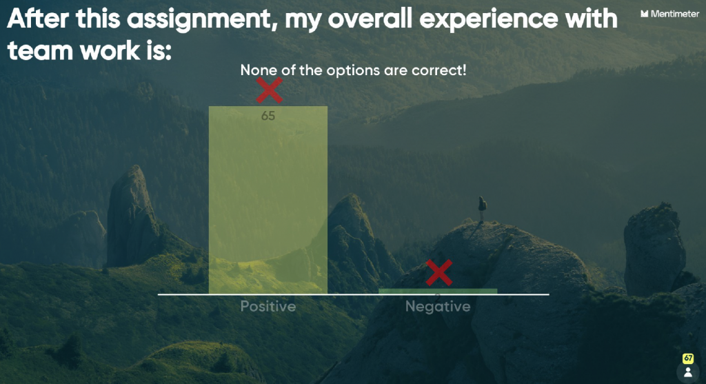 Voor de eindreflectie tijdens de closing seminar konden studenten hun ervaringen delen. Vid gebruikte hiervoor Mentimeter.