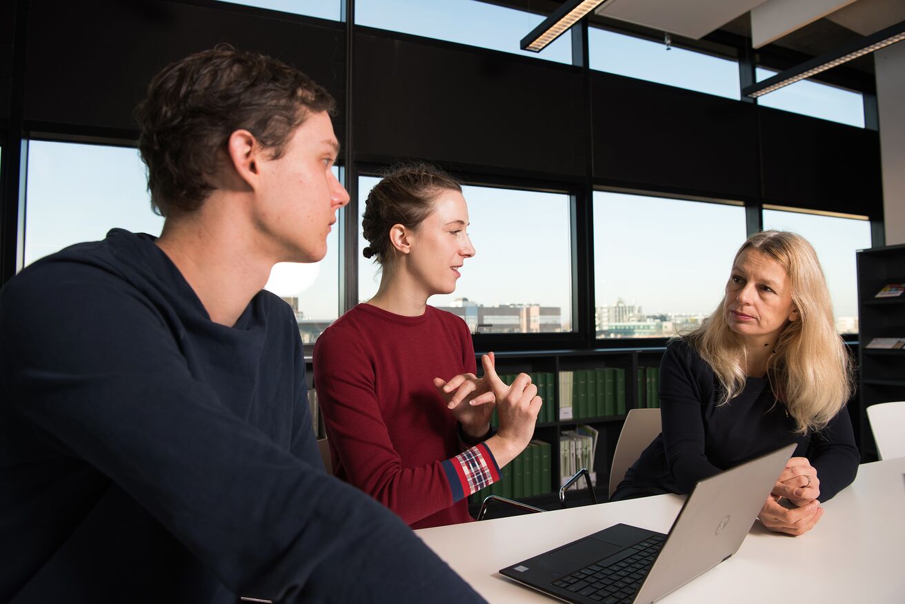 Studenten op de Roeterseilandcampus