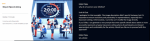 The instructors modeled a critical, yet practical approach from the start. Needing to quickly divide students into groups, Ildikó used the UvA AI Chat to generate ideas for a game. When creating slides for this game, another opportunity emerged. The AI, asked to create an image for a “speed dating” icebreaker, produced a picture rife with stereotypes.